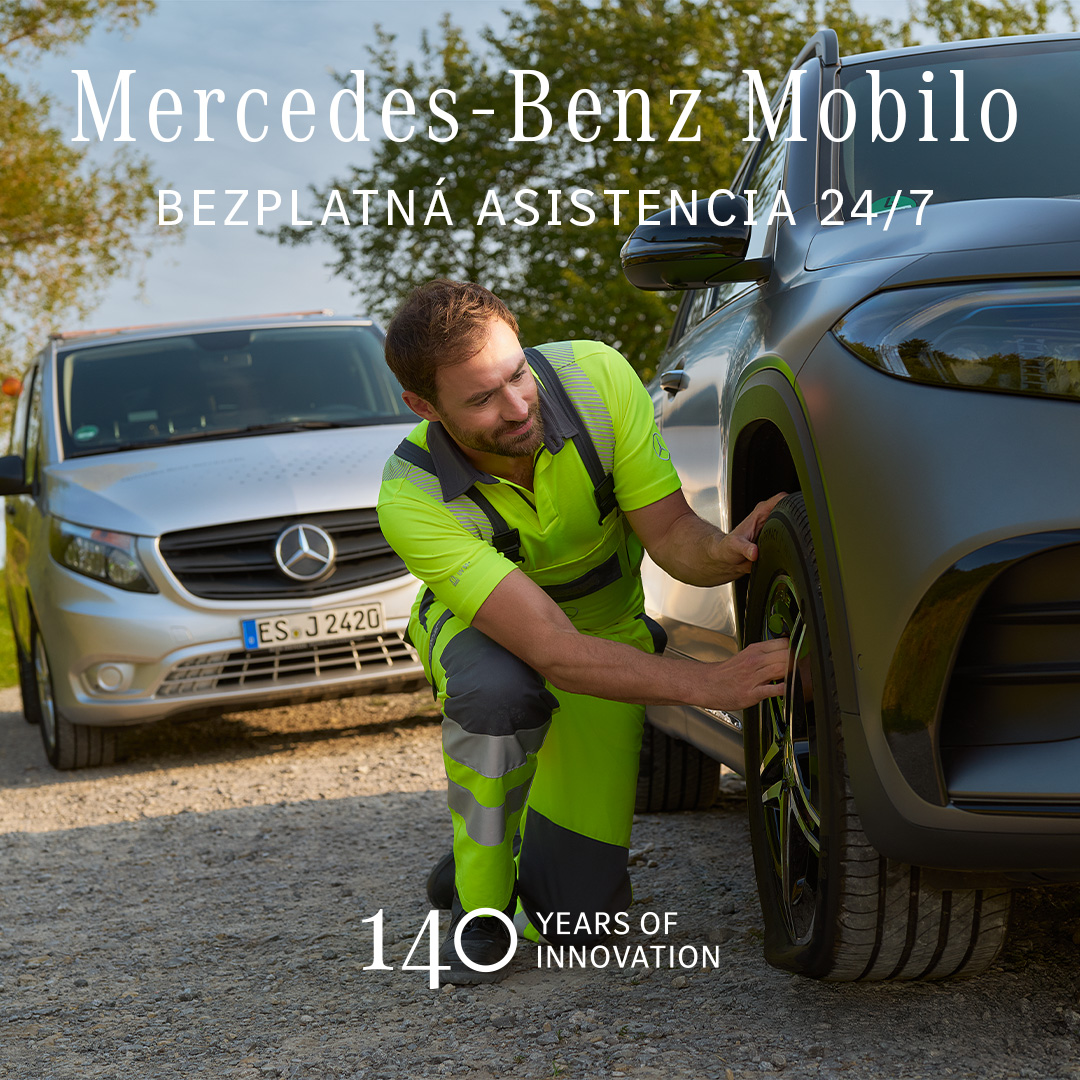 Niekedy vás porucha zastaví v tom najmenej vhodnom okamihu. Buďte bez obáv. Asistencia Mercedes-Benz Mobilo sa o vás postará 24/7. Oprava na mieste, zavolanie taxislužby alebo náhradné vozidlo – čokoľvek budete potrebovať. Služba Mobilo platí dva roky od kúpy vozidla a s každou návštevou autorizovaného servisu sa predlžuje o ďalší rok. So službou Mobilo vždy dosiahnete cieľ svojej cesty.